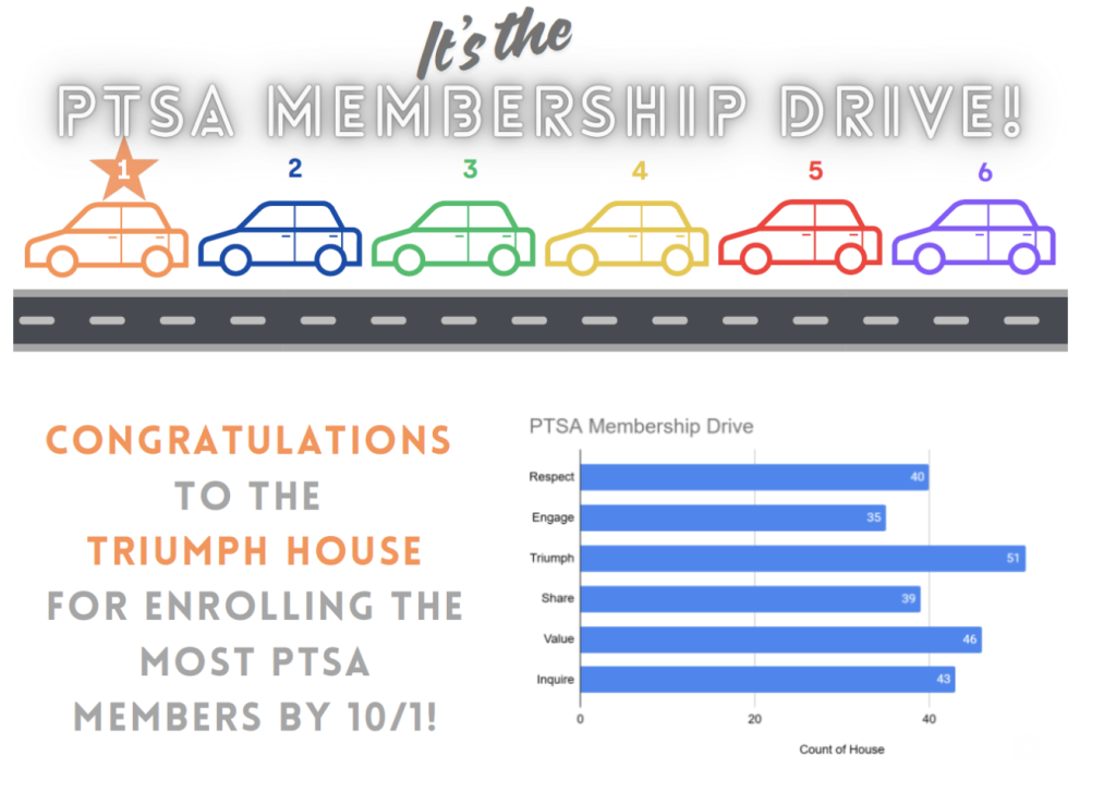 Thanks to all of the STRIVE Houses, we met 100% of our PTSA membership goal. Congratulations to the Triumph House for enrolling the most PTSA members during this year’s membership drive.